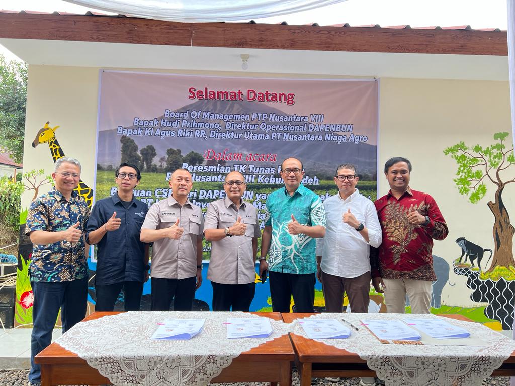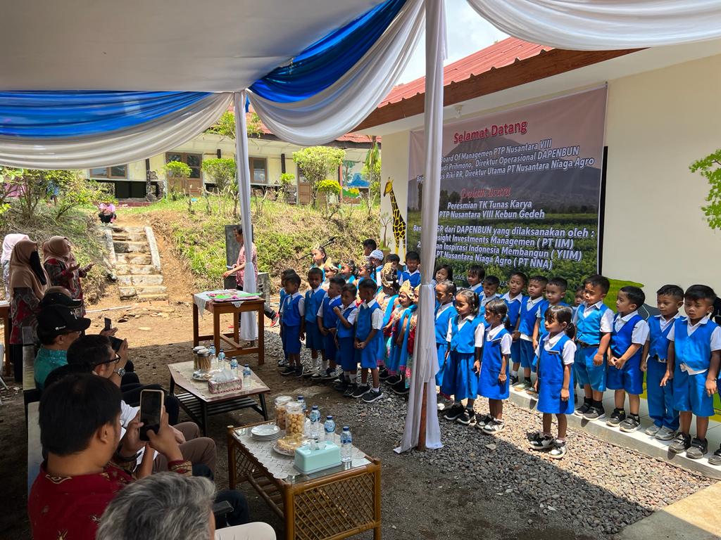 Kegiatan ini dihadiri oleh SEVP Manajemen Aset PT Perkebunan Nusantara VIII Bapak Dian Hadiana Arief, Direktur Operasional DAPENBUN Bapak Hudi Prihmono, Direktur Utama PT Nusantara Niaga Agro (PT NNA) Bapak Ki Agus Riki Ridwan Rahman, Koordinator CSR PT Insight Investments Management Bapak Isnaeni, Sekretaris Yayasan Inspirasi Indonesia Membangun (YIIM) Bapak Imam Fadchurrodzi, Manager Kebun Gedeh Bapak Mochamad Mulyadi, serta para siswa-siswi dan Guru TK Tunas Karya.