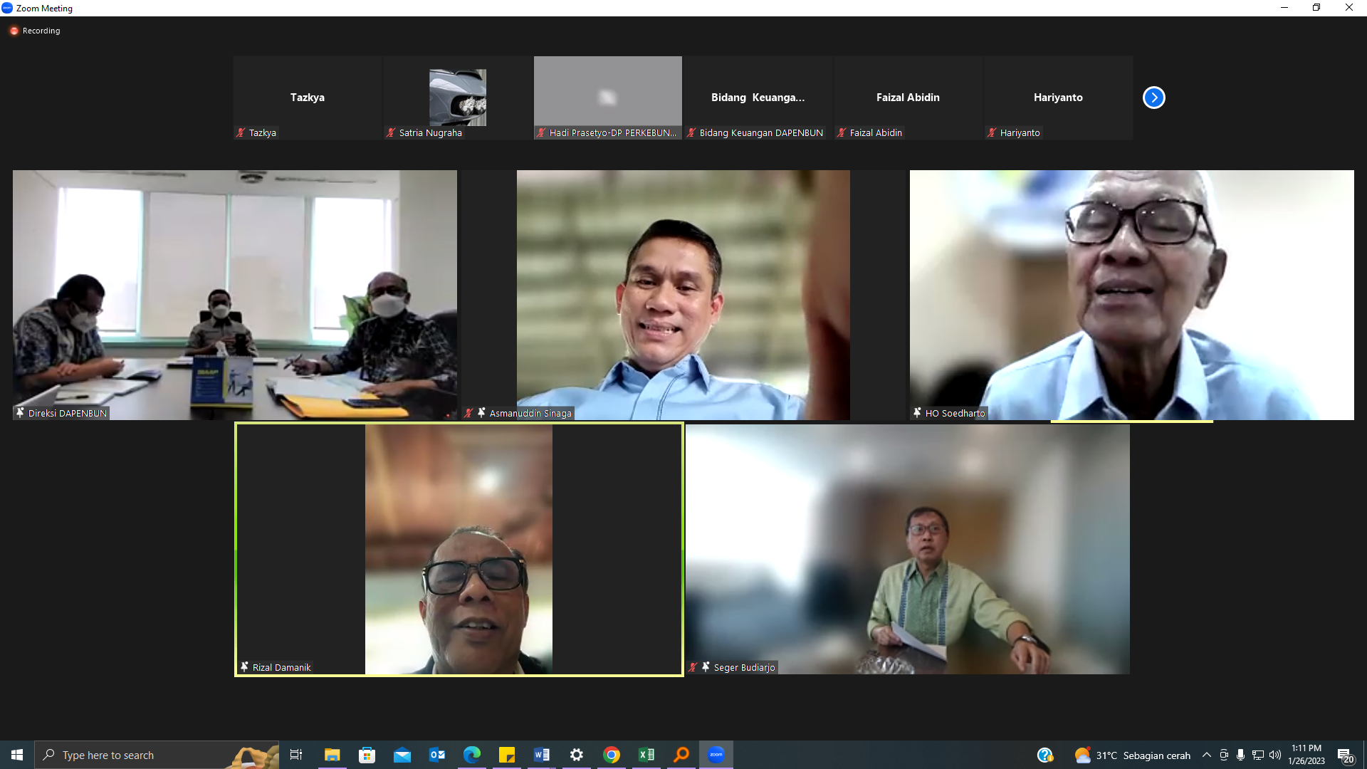Telah diselenggarakan Rapat Dewan Pengawas dan Direksi DAPENBUN pada Kamis, 26 Januari 2023. Rapat dilaksanakan secara offline di Kantor DAPENBUN dan online melalui Zoom Meeting.