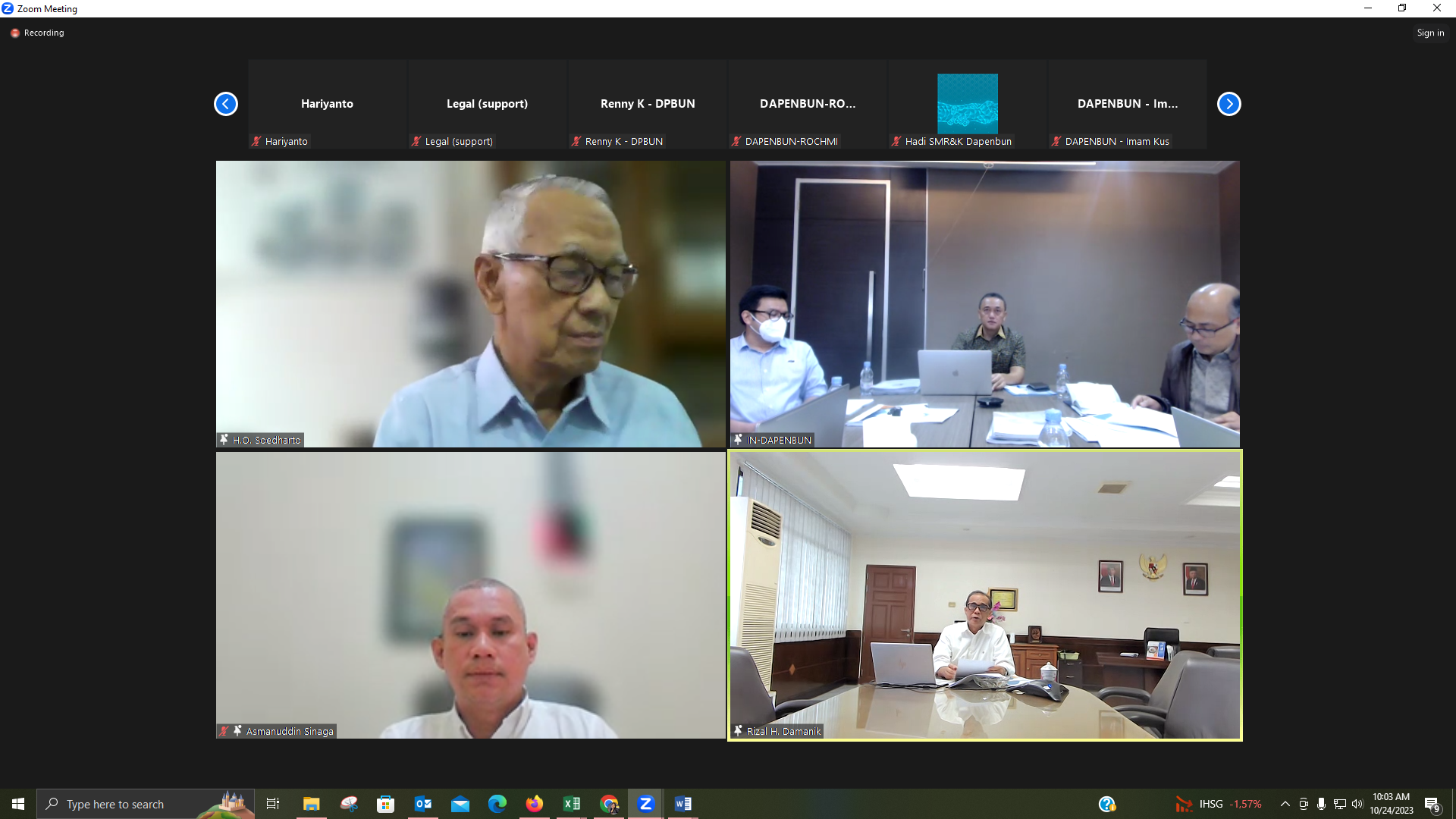 DAPENBUN kembali menyelenggarakan Rapat dengan Dewan Pengawas pada Selasa, 24 Oktober 2023 yang berlangsung secara online melalui Zoom Meeting. Rapat ini merupakan yang ke-5 kali dilaksanakan dalam tahun 2023.