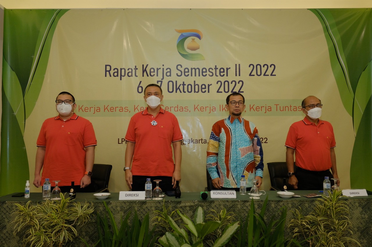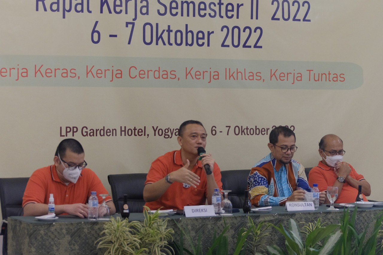 Bertempat di LPP Garden Hotel Yogyakarta, kegiatan diselenggarakan pada tanggal 6 – 7 Oktober 2022 dengan tema “Kerja Keras, Kerja Cerdas, Kerja Ikhlas, Kerja Tuntas, Kerja Berkualitas”. Direktur Utama Bapak Edwind Sinaga secara resmi membuka Kegiatan Raker Semester II/2022 melalui sambutannya.