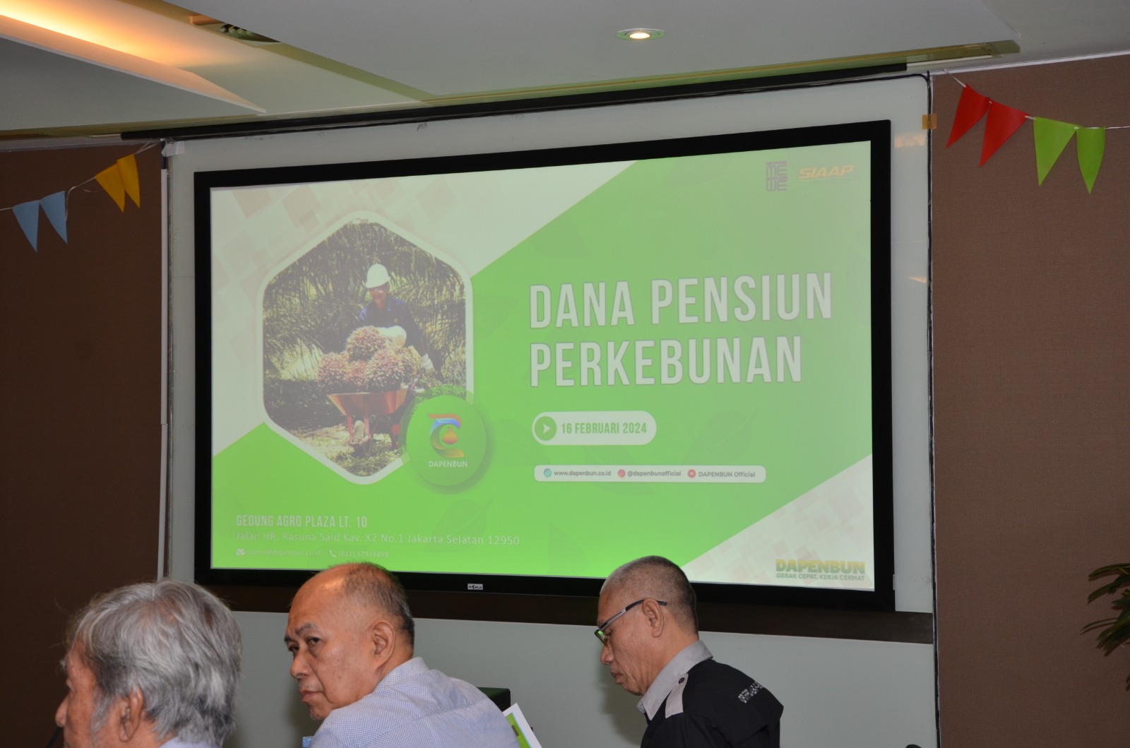 Telah dilaksanakan Pertemuan DAPENBUN dengan Organisasi Pensiunan yaitu Persatuan Purnakaryawan Perkebunan Republik Indonesia (P3RI) dan Forum Komunikasi Purnakarya Perkebunan Nusantara (FKPPN) pada Jumat, 16 Februari 2024 berlangsung di Kantor DAPENBUN, Jakarta Selatan.