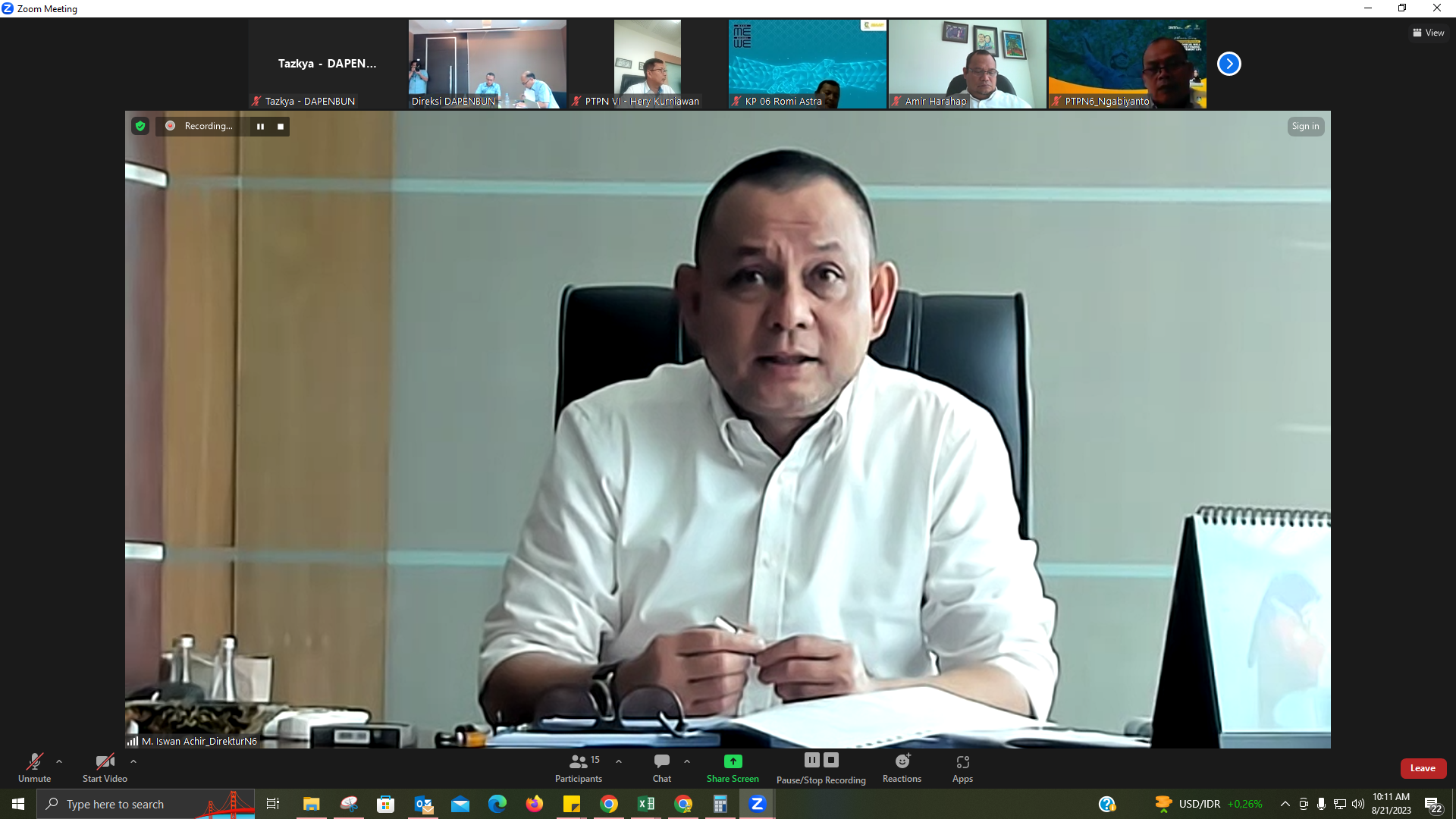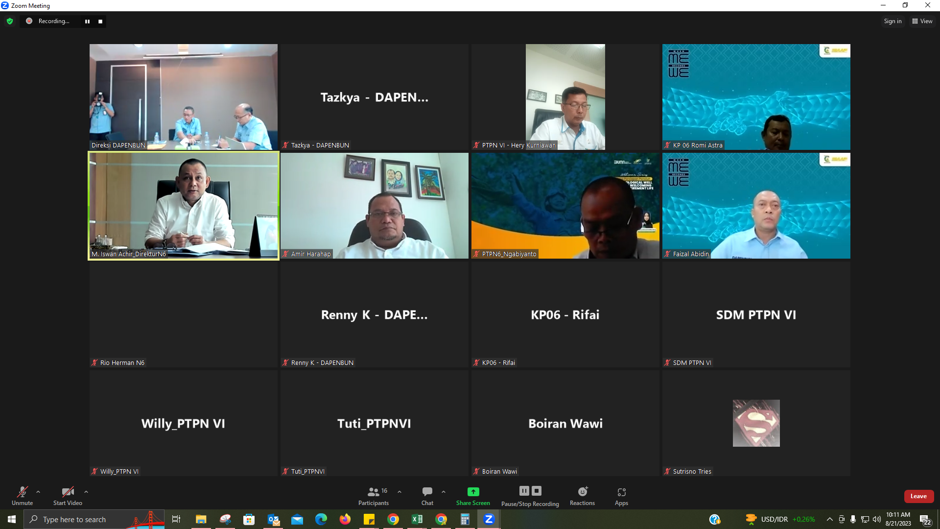 DAPENBUN mengadakan Rapat Sosialisasi Pendanaan PTPN VI pada Senin, 21 Agustus 2023 secara virtual melalui Zoom Meeting.