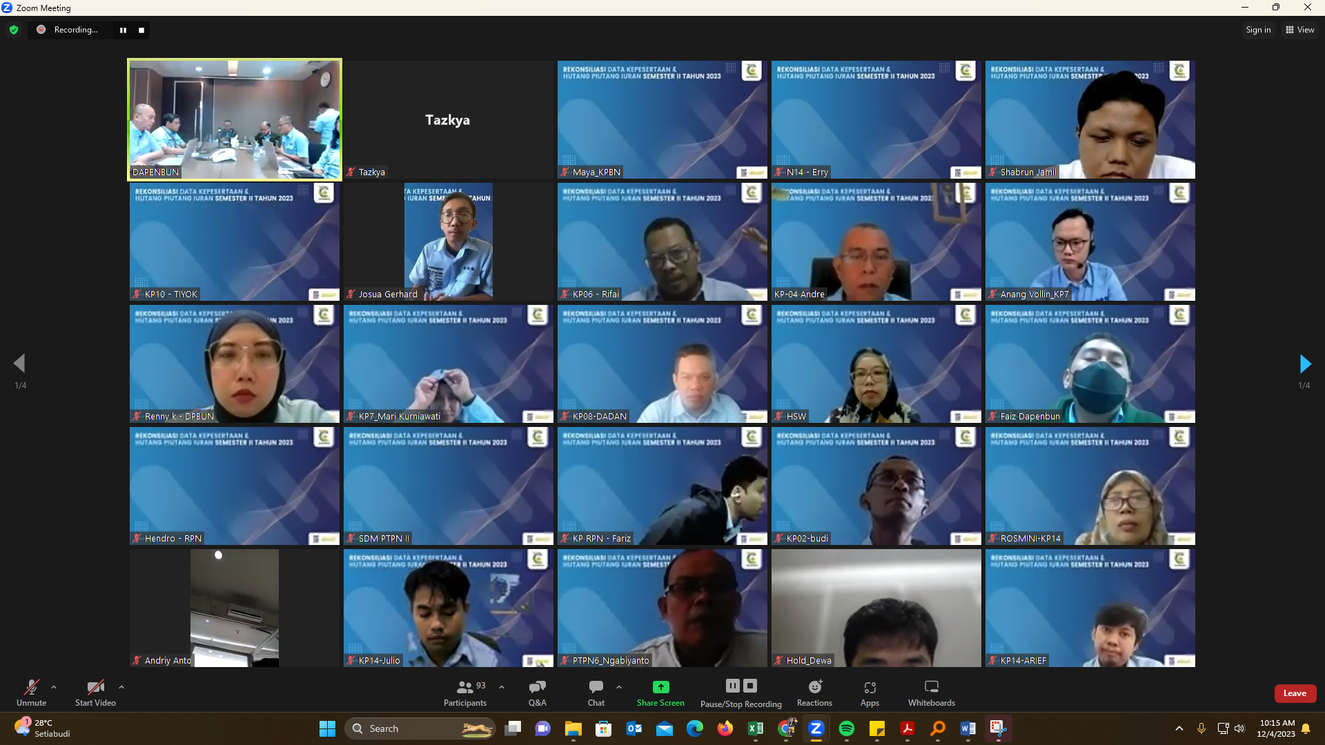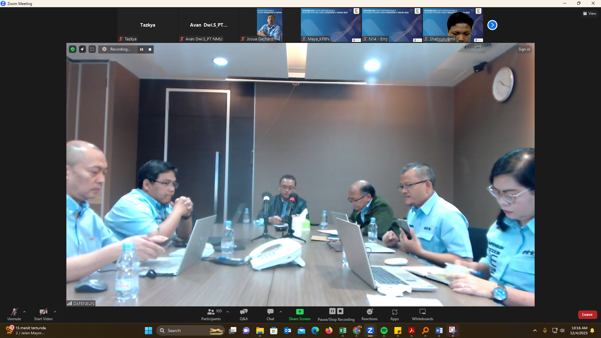 Guna tercapainya pembayaran manfaat pensiun secara tepat jumlah, tepat orang, dan tepat waktu, DAPENBUN mengadakan kegiatan Pembukaan Rekonsiliasi Data Kepesertaan dan Hutang Piutang Iuran Semester II Tahun 2023 pada Senin, 4 Desember 2023. Kegiatan dilaksanakan secara hybrid, berlokasi di Kantor DAPENBUN Pusat dan melalui Zoom Meeting.