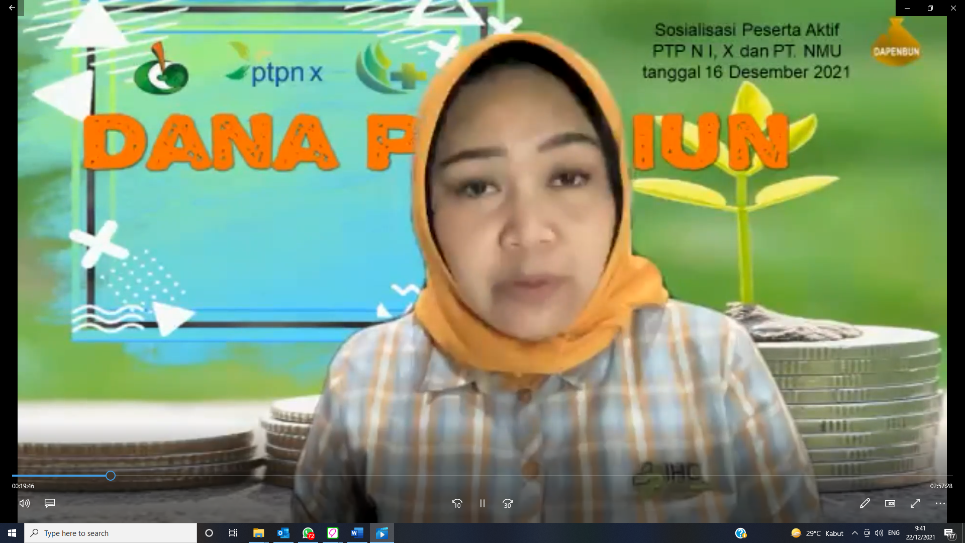Sebagai upaya dukungan DAPENBUN kepada para Peserta yang akan menyambut masa pension, dan dan hal ini tidak terlepas dari komitmen DAPENBUN untuk senantiasa terus memberikan pelayanan terbaik untuk peserta, DAPENBUN memberikan bekal terkait mempersiapkan masa pension kepada Peserta dengan melaksanakan Sosialisasi Peserta Aktif. Walaupun dilaksanakan pada masa pandemic melalui teleconference, namun Sosialisasi tetap berlangsung dengan baik dan lancar.