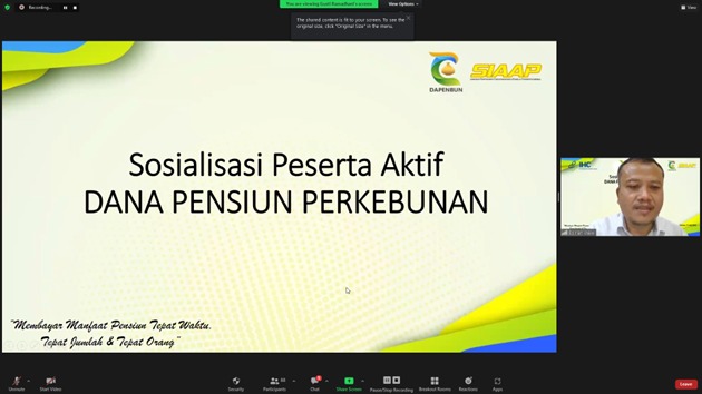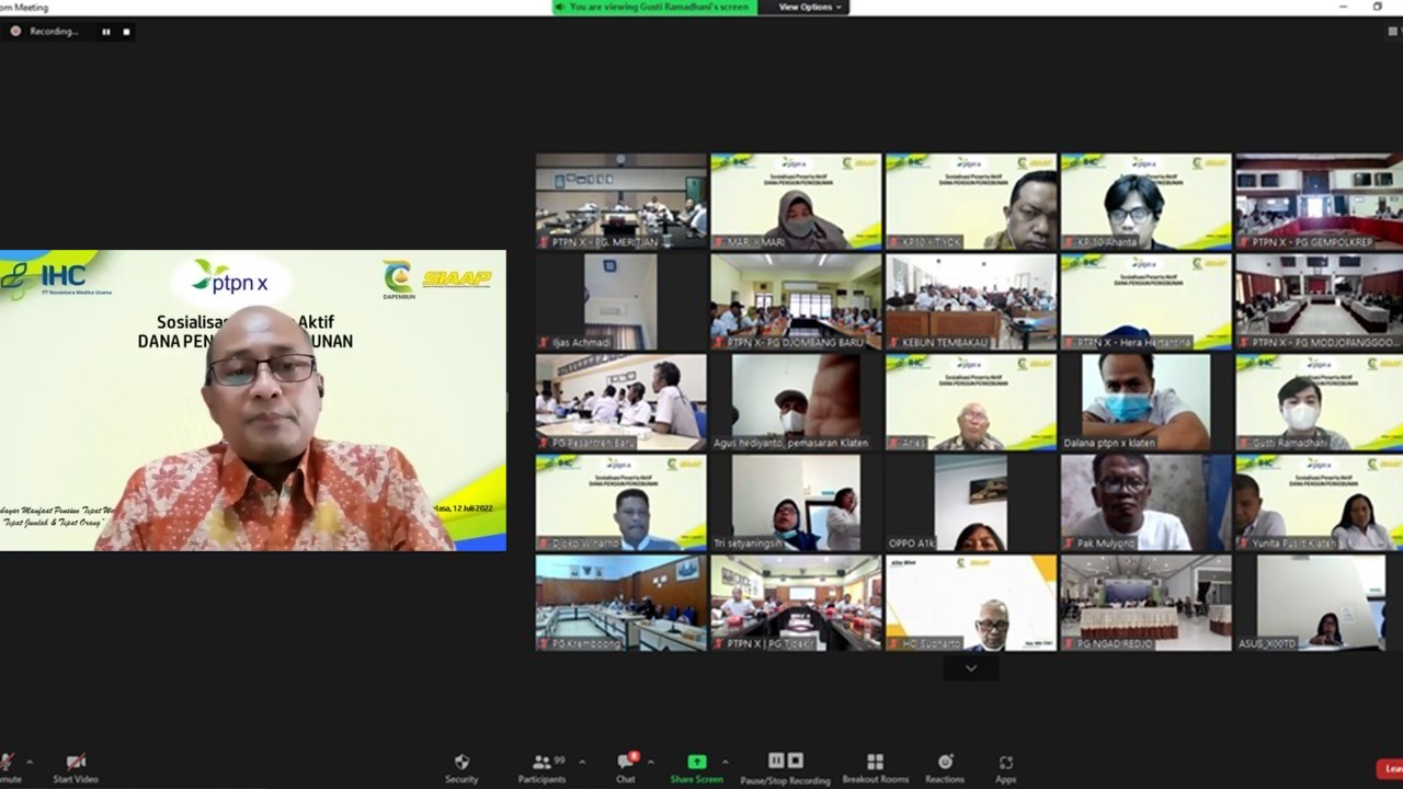 Dalam rangka memberikan pelayanan terbaik untuk para pesertanya, DAPENBUN menyelenggarakan Kegiatan Sosialisasi Peserta Aktif PT Perkebunan Nusantara X dan PT Nusantara Medika Utama sebagai kegiatan rutin tahunan DAPENBUN yang dilaksanakan secara virtual melalui Zoom Meeting.