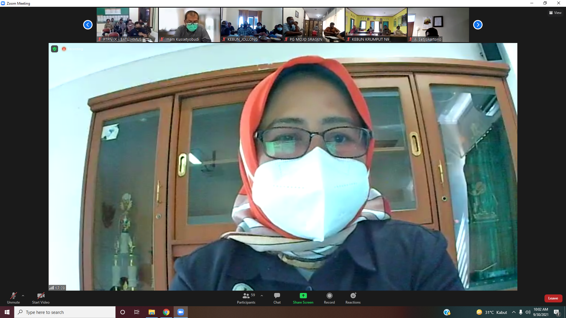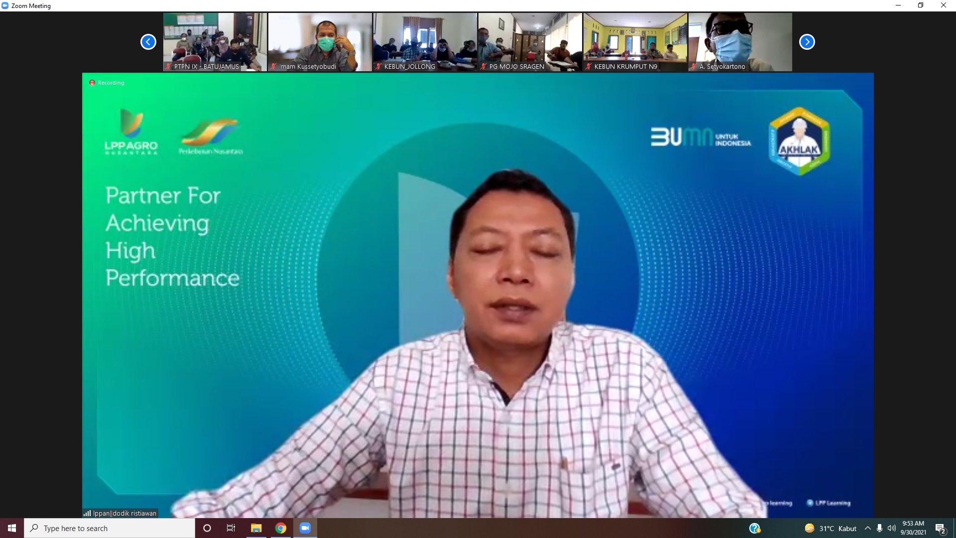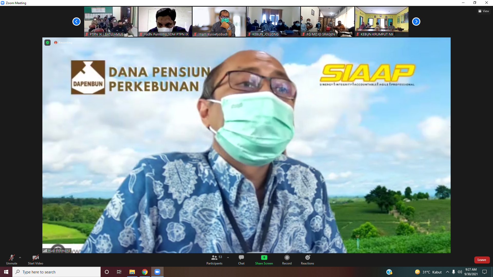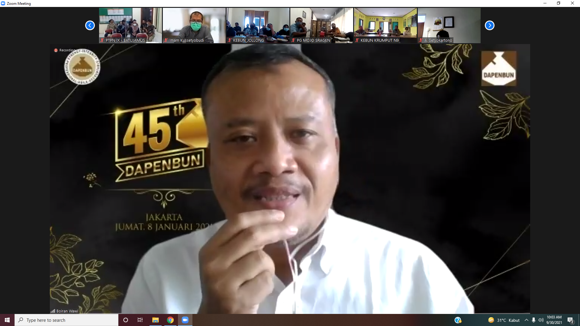 DAPENBUN menyelenggarakan acara sosialisai peserta aktif PTPN IX dan PT. LPP AN yang berlangsung secara virtual melalui zoom meeting, Kamis (30/9/2021)
