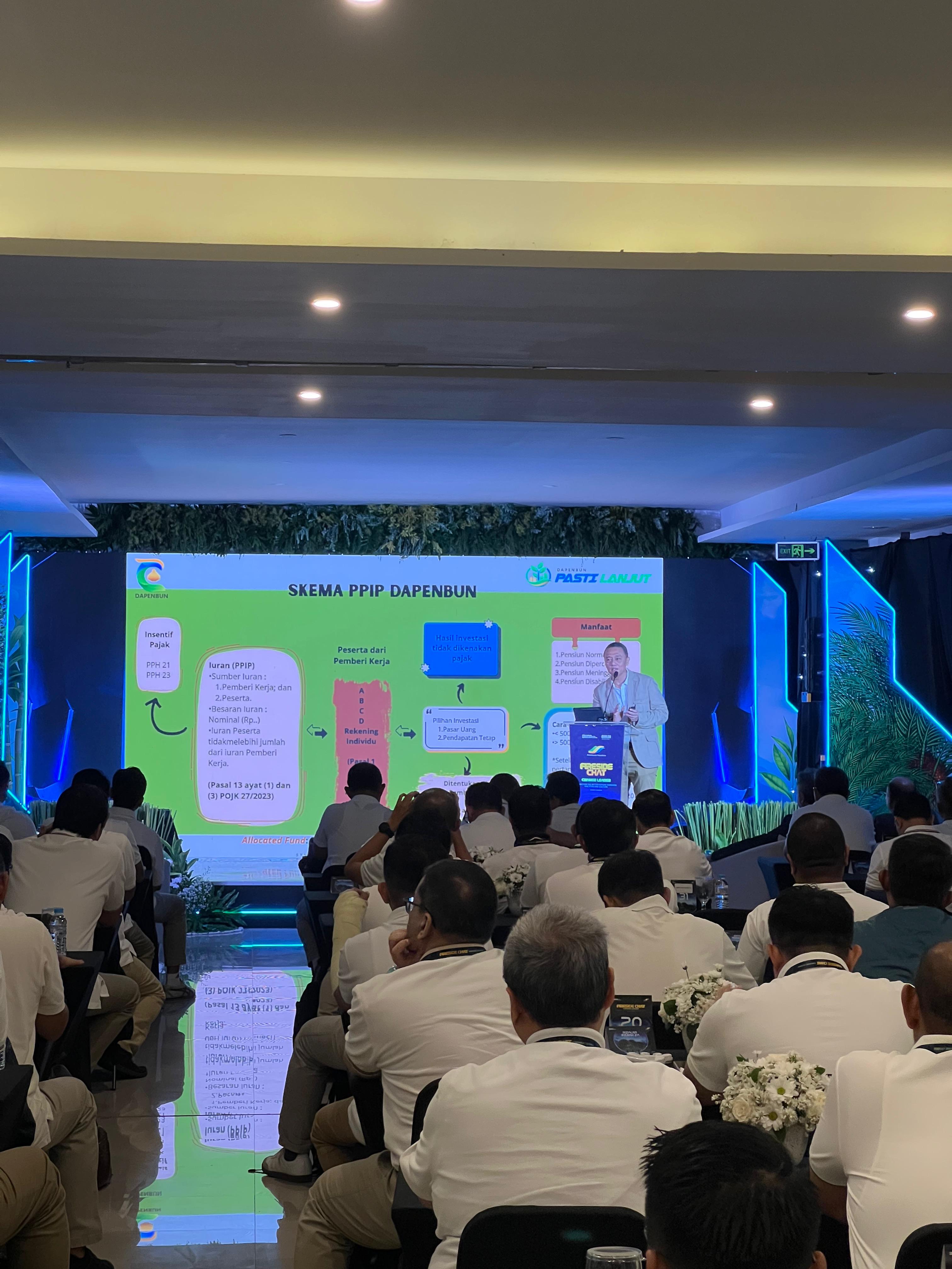 Dalam kesempatan ini, Bapak Edwind Sinaga selaku Direktur Utama DAPENBUN, berkesempatan menyampaikan sosialisasi mengenai Program Pensiun Iuran Pasti (PPIP). Program ini dirancang untuk memberikan jaminan pensiun yang lebih terencana dan berbasis iuran tetap bagi seluruh peserta.