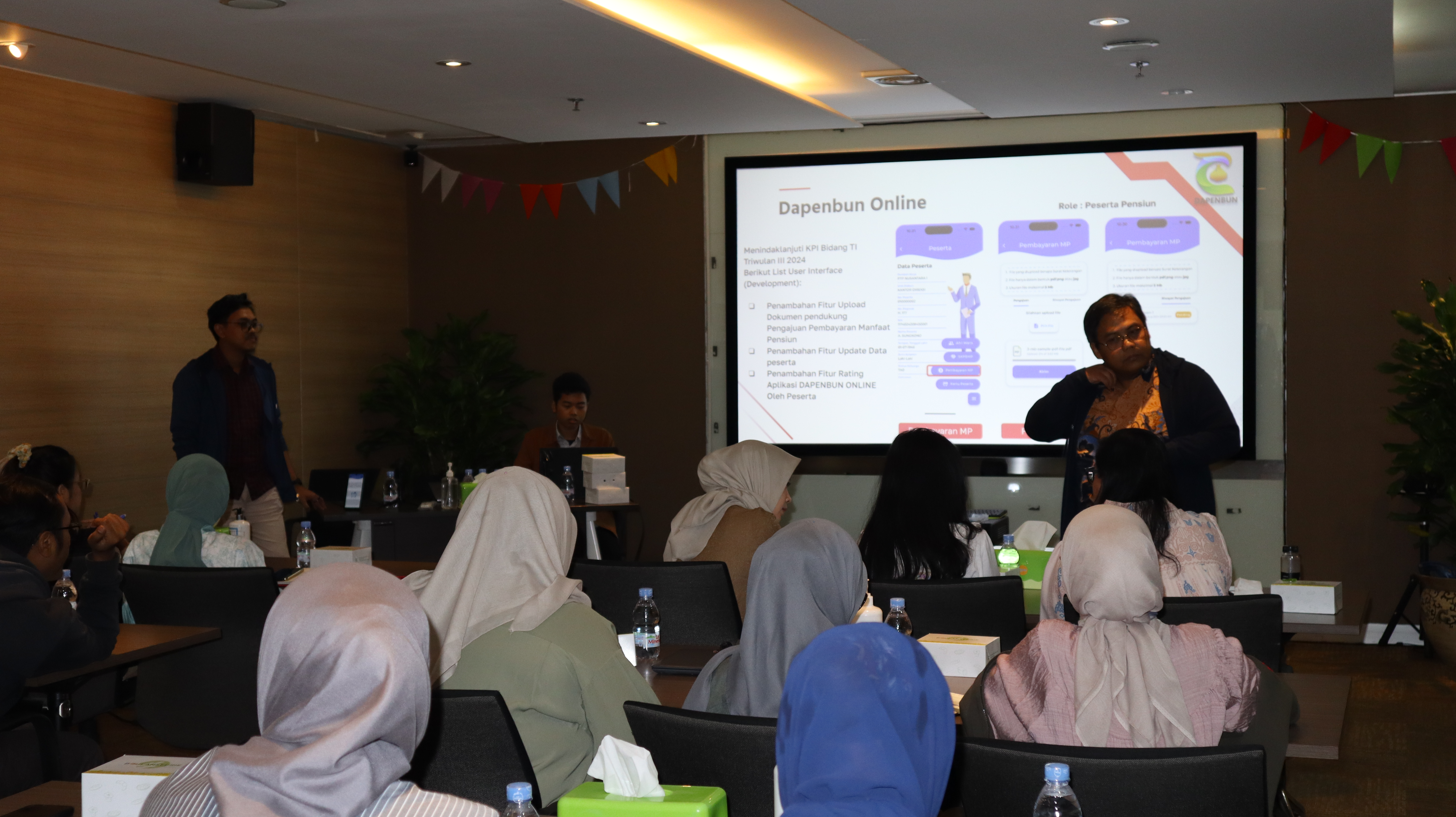 Kegiatan diinisiasi oleh Bidang Teknologi Informasi DAPENBUN dalam rangka optimalisasi aplikasi DAPENBUN Online guna memudahkan proses validitas data peserta pensiun pada pelaksanaan Autentikasi Diri Tahap II yang akan berlangsung di bulan Oktober s.d Desember Tahun 2024.